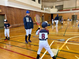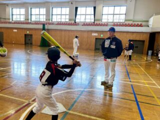 当日は、選手2名と普及コーチ1名が参加し、基本動作指導やキャッチボール、バッティング指導などを通じて、子どもたちと交流の時間を過ごしました。