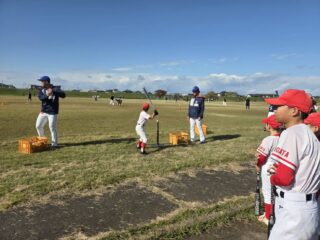 当日は、選手4名、普及コーチ1名が参加し、基本動作指導やキャッチボール、バッティング指導などを通じて、子どもたちと交流の時間を過ごしました。