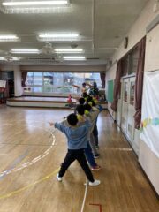 オイシックス新潟アルビレックスBCの選手1名、普及コーチ2名が、2025年12月22日(月)に新潟市立亀田第五保育園を訪問し、年長児を対象に野球教室を行いました。