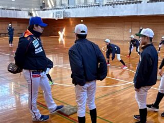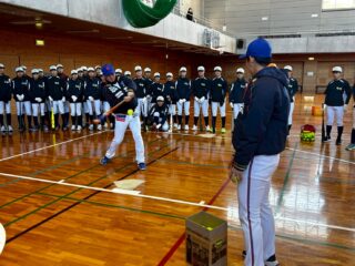 当日は、選手2名と普及コーチ1名が参加し、基本動作指導やキャッチボール、バッティング指導などを通じて、子どもたちと交流の時間を過ごしました。