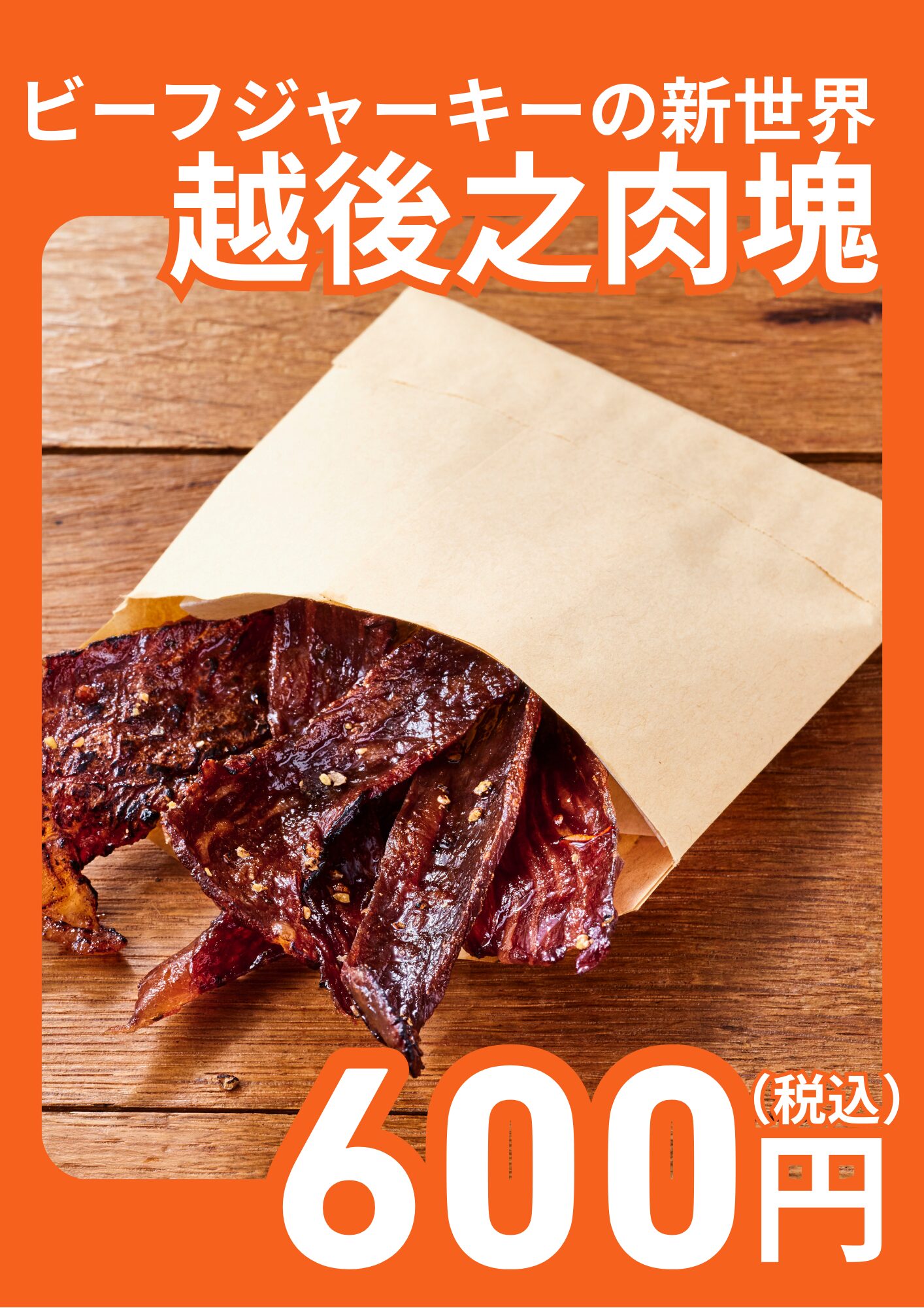 新潟県長岡市与板地区にある中島牧場で米を食べて育った牛肉を、同じく新潟県長岡市摂田屋の醸造の町を象徴する醤油蔵、越のむらさきの醤油で漬け込んだ、贅沢なおつまみです。肉感あふれる美味しさをより味わえるように、炙って提供いたします。