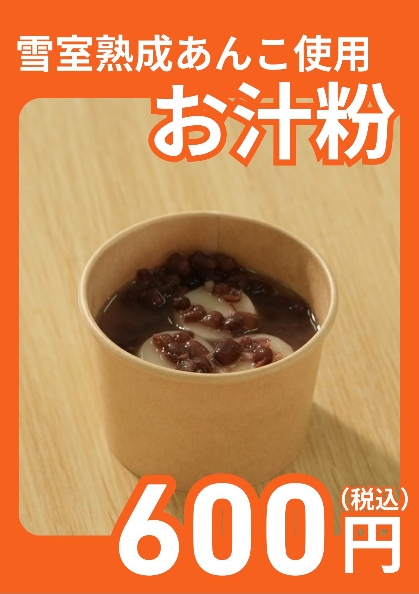 新潟の伝統的な貯蔵方法「雪室」でじっくり熟成させたあんこを使用。白玉は新潟県産の白玉粉で仕上げました。 やさしい甘さが広がる、身体もほっと温まる一品です。