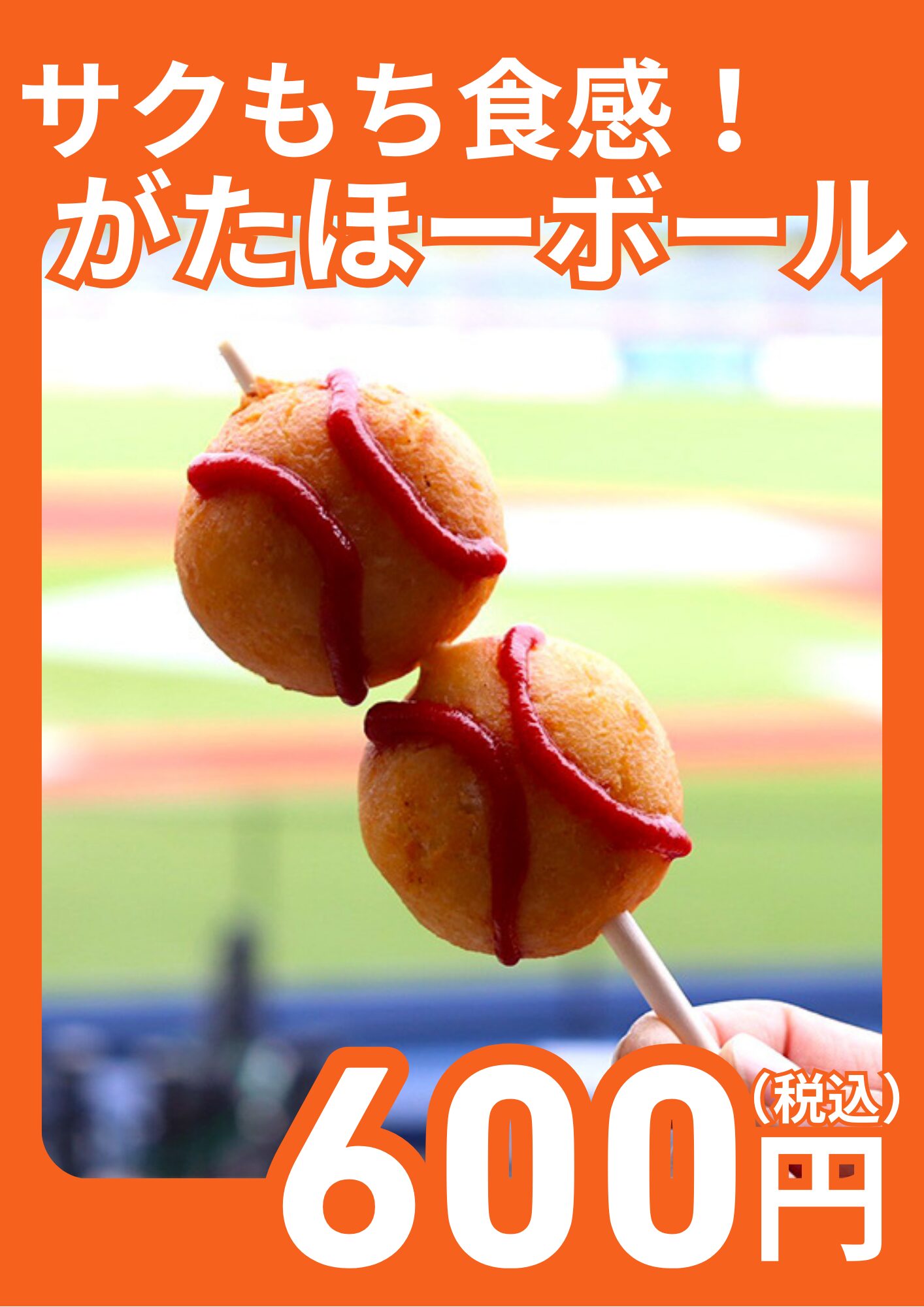 新潟県内で水揚げされるものの、小骨が多く鮮度の落ちも早いため市場に出回らない“未利用魚”エソを活用し、スタジアムグルメにアレンジ!サクッと甘く仕上げた豆腐入りの皮の中には、プリっとした食感とエソのうま味が詰まったすり身がたっぷり。アメリカンドッグをイメージした、老若男女問わずお召し上がりいただける一品です。