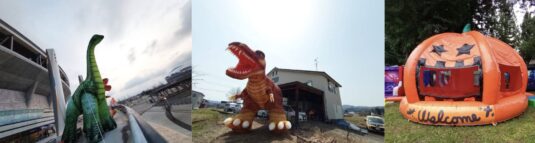 外野席の芝生ゾーンにて、ふわふわ(大型エアー遊具)を設置します!子どもたちが中に入って楽しむことができます。