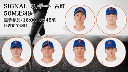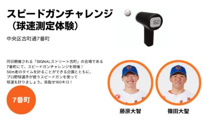 SIGNALストリート古町は7番町を舞台に50m走のタイムを測定するイベントですが、その隣でプロ野球選手が使うスピードガンで球速を測定します!