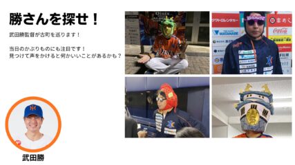 古町を巡る武田勝監督を見つけよう!声をかけると何かいいことがあるかも?