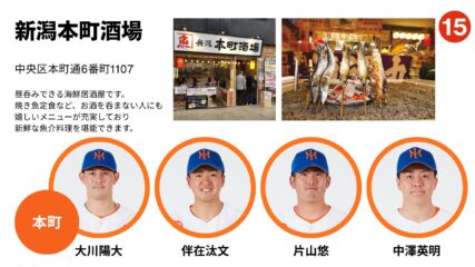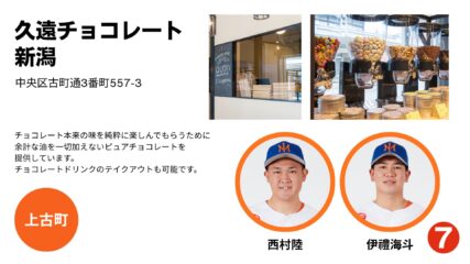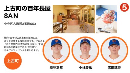 ※なるべく多くのサポーターの皆さまに選手と交流しながら各店舗を巡っていただきたく、1店舗での滞在時間を最大30分程度とさせていただきます。古町の素敵なお店をぜひたくさん巡っていただければと思います。