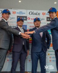 ▲12/16 入団会見 左から石川直也選手、井口和朋選手、松山竜平選手、宮森智志選手 ※欠席:渡邉諒選手、アダム・ウォーカー選手