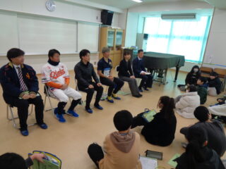 卒業を控えた6年生児童57名に稲葉コーチから、野球選手として40歳までプレーを続けて来れた理由や、コーチの仕事をする上での選手とのコミュニケーションの取り方、準備をすることの大切さなどをお伝えしました。