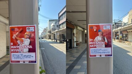 20周年記念コラボ企画第一弾として、本日3月24日より“全選手の紹介ポスター”の掲示をスタートいたします。全選手のビジュアルと、選手の寸評が書かれたA4ポスターを、上古町商店街の柱に掲示いただきます。