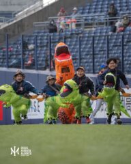 ティラノサウルスの着ぐるみを着てレースに挑戦!