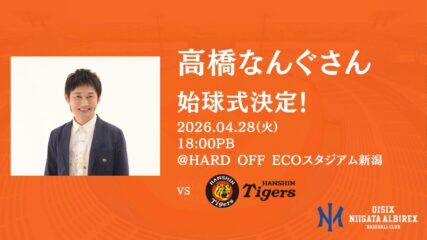 オイシックス新潟アルビレックス・ベースボール・クラブは、4月28日(火)に開催される阪神タイガース戦にてお笑い芸人の高橋なんぐさんの登場が決定いたしました。